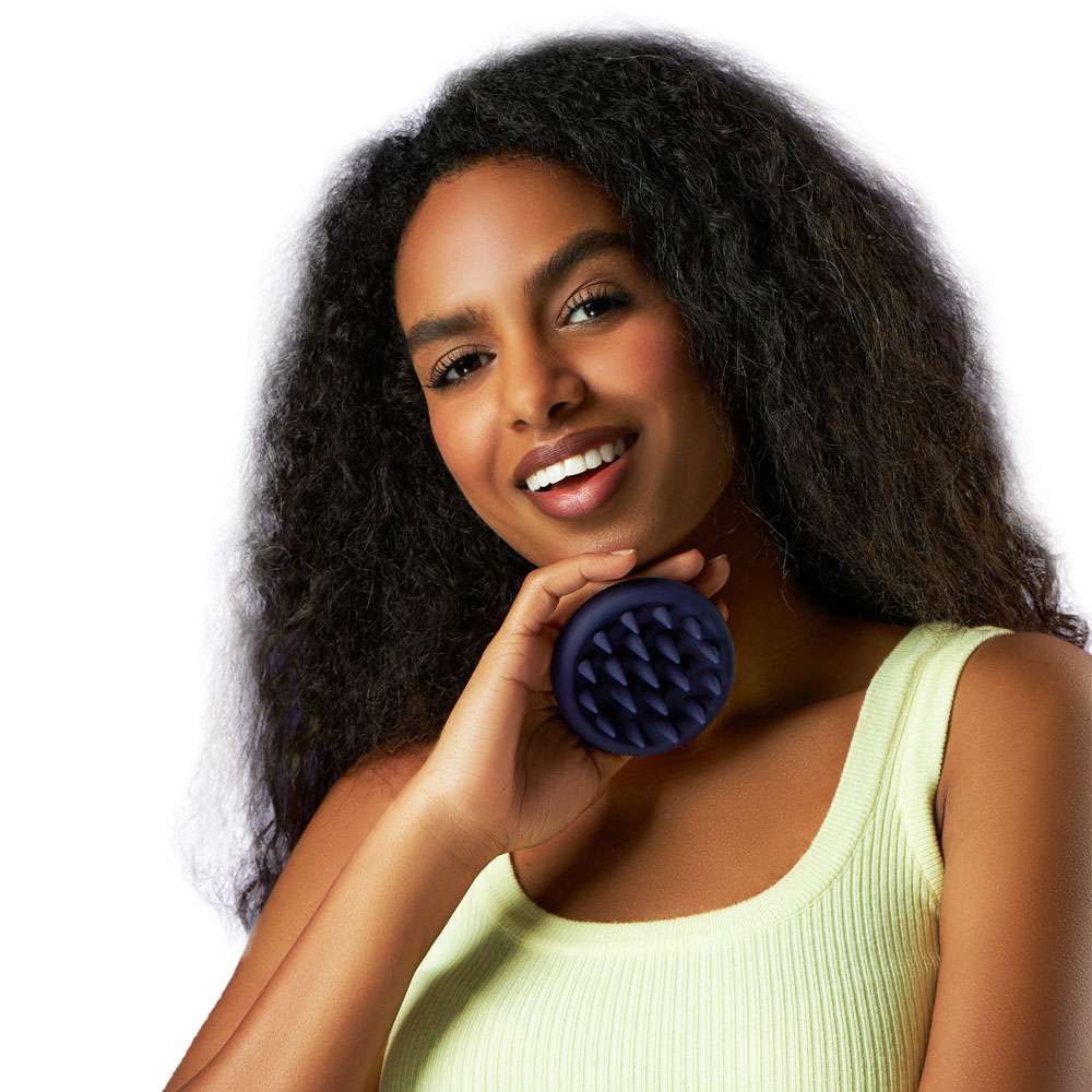 Firm silicone scalp exfoliator for deep cleansing and oil control. Best for thick, curly, or oily hair types needing strong exfoliation.