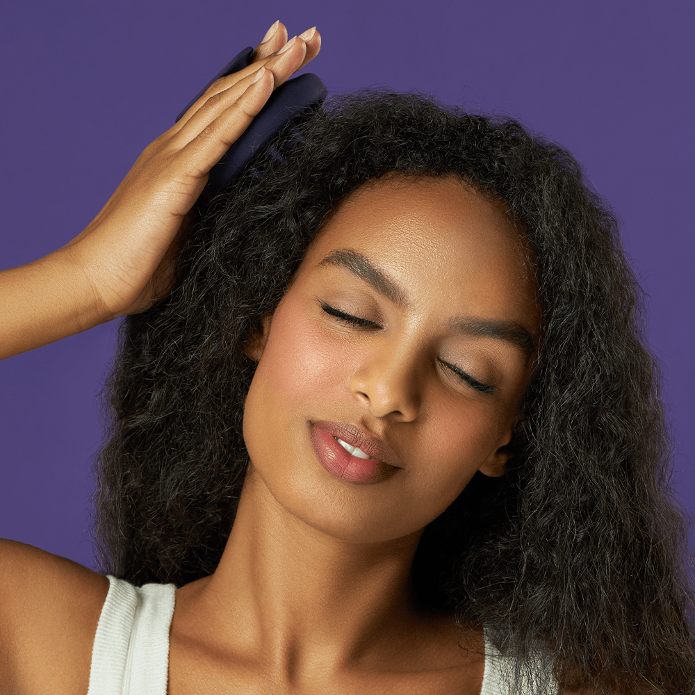 2. Use the hard silicone scalp exfoliator in gentle circular motions